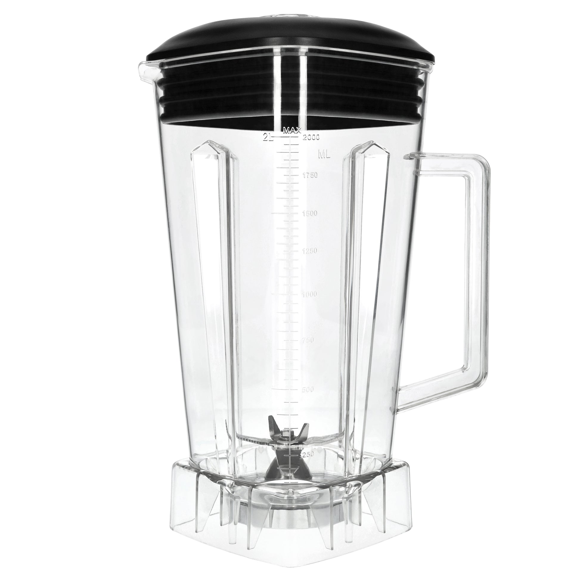 Ersatzbehälter aus widerstandsfähigem TritanTM (Copolyester) für den Smoothie Mixer. Mit 6-Klingen Messereinheit aus japanischem Messerstahl (rostfrei). Inklusive Deckel und Stössel. BPA-frei.