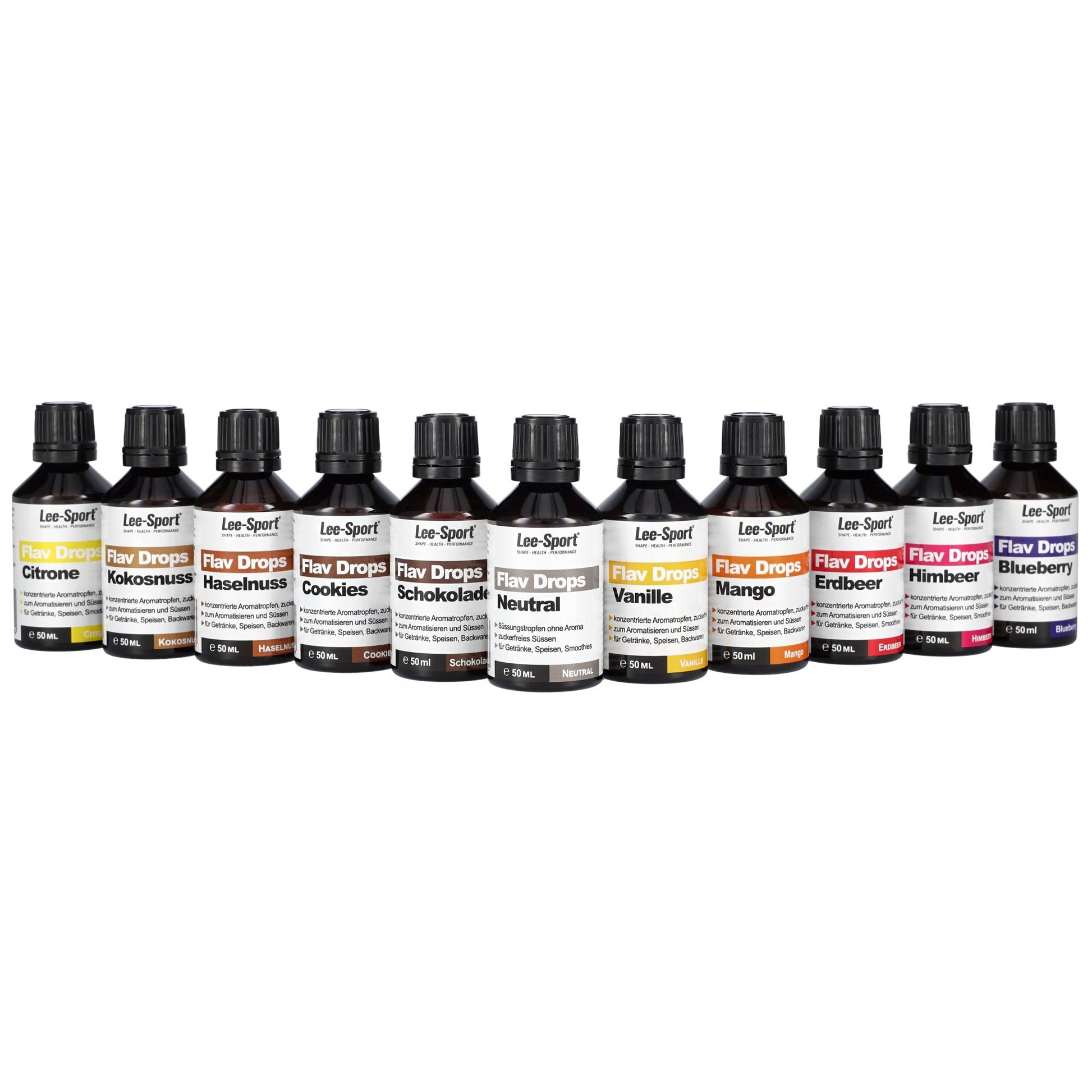 Mit neutralem Proteinpulver und 5 - 10 Flav Drops kann die Geschmacksrichtung und Süsse eines Proteinshakes individuell bestimmt und täglich abgewechselt werden.